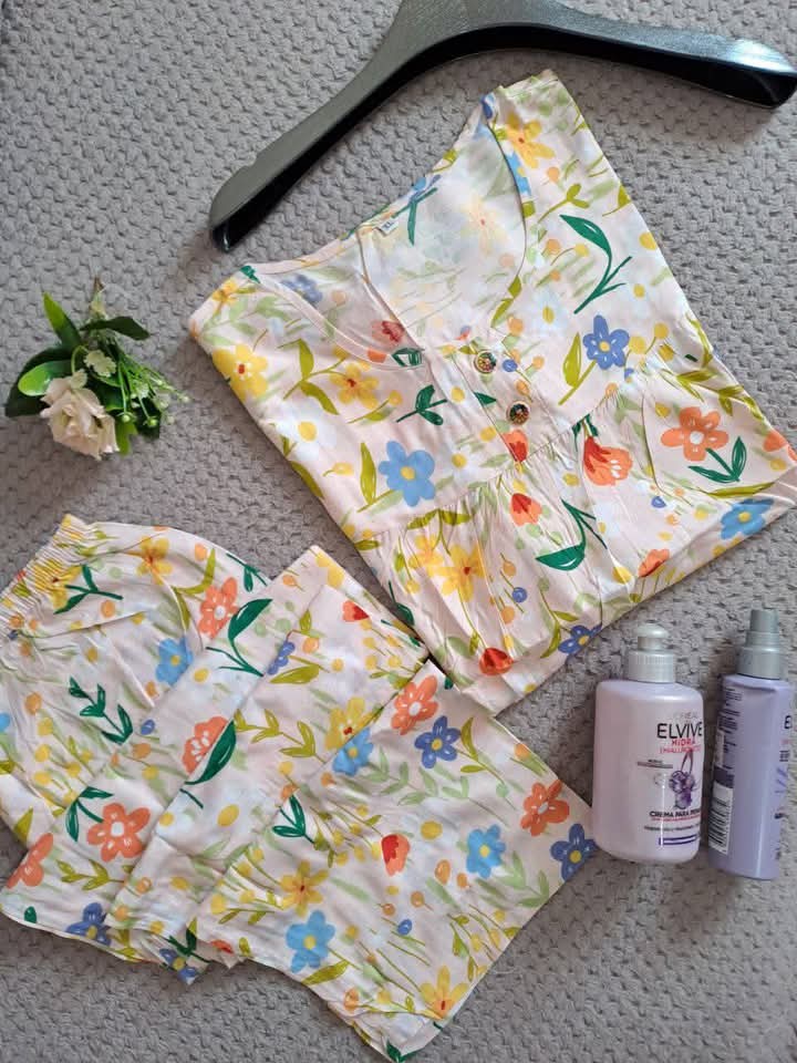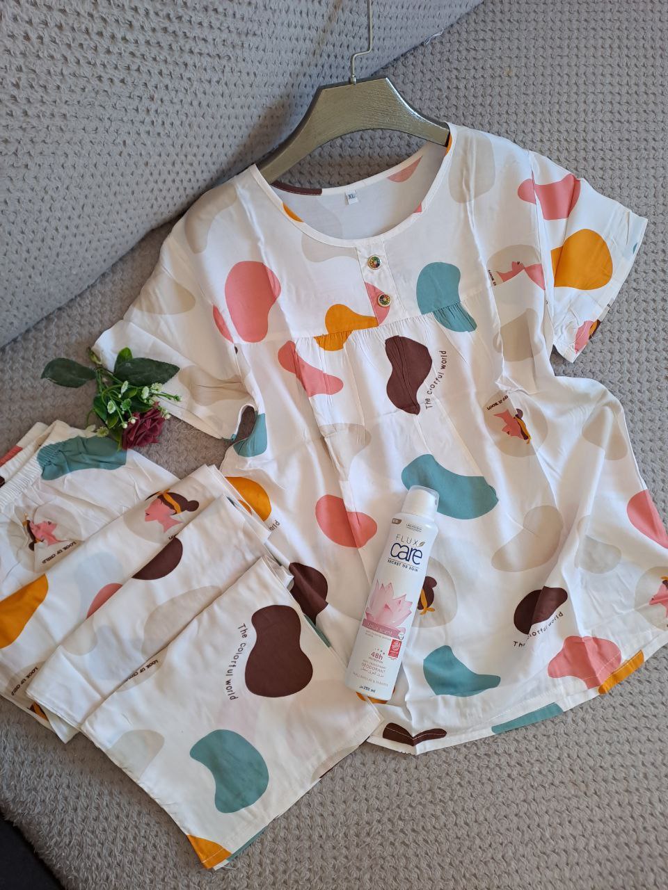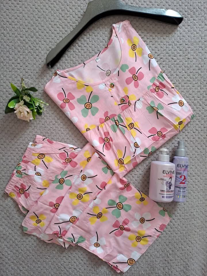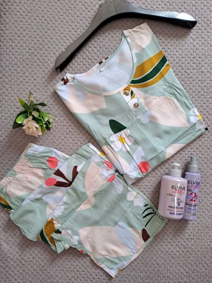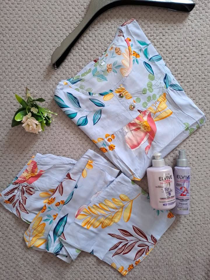 بيجاما نسائي صيفي مصنوع من قماش الفيبران بالوان زاهية و صيفية مريح و ناعم